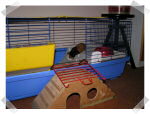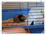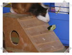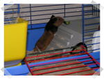 … oder was man mit Geduld alles schaffen kann. Nein, leicht war es nun wirklich nicht, das kleine schüchterne Fellknäul aus dem Käfig zu locken, aber man hat ja immer noch ein paar Asse im Ärmel bzw. ein Stückchen Gurke in der Hand. Mit dessen Hilfe gelang es dann heute endlich, das er sich aufs Häuschen vor dem Käfig vorwagte. Jetzt muss er es nur noch schaffen, die Stufen nach unten zu klettern… der Gurke hinterher (siehe letztes Bild *g*).