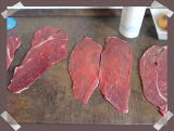 Unsere Rouladen machen wir eigentlich recht ursprünglich. Ich würze sie anfangs mit Senf, frisch gemahlenen Pfeffer, Salz, scharfen Paprika, Liebstock und Salz und trapiere sie danach mit Speck. Die Goettine füllt ihre dann mit sauren Gurken und ich, da ich sowas nicht mag, benutze anstelle dessen grüne Bohnen.. Danach zusammengerollt und mit Nadeln befestigt warten die Rouladen erstmal, bis Zwiebel und Speckschwarte im Topf angebraten sind. Nun landen sie in eben diesem und werden scharf angebraten. Ist dies geschehen, fülle ich sie mit ca. 1l Rinderbrühe auf. Das Ganze kann dann locker 2 Stunden auf niedriger Stufe vor sich hin kochen. Zum Schluss muss dann nur noch die Sauce angedickt werden und fertig.
